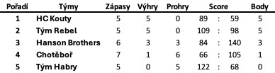 a. hraje se na vítězství / porážku. Za vítězství je 1 bod do tabulky